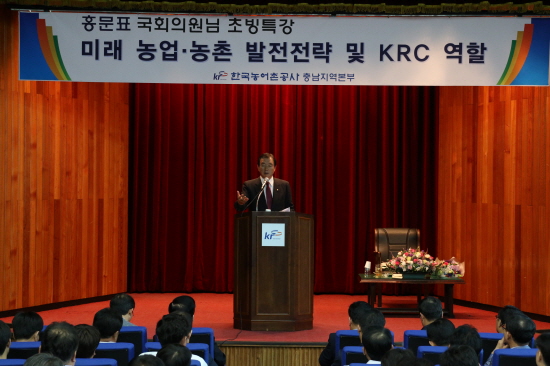 한국농어촌공사 충남지역본부 (본부장 김병찬)가 홍문표 의원(새누리당)이 30일 본부 대강당에서 관내 지사장 및 전원을 대상으로 미래농업농촌 발전전략과 한국농어촌공사의 역할이라는 주제로 특강을 했다고 밝혔다.