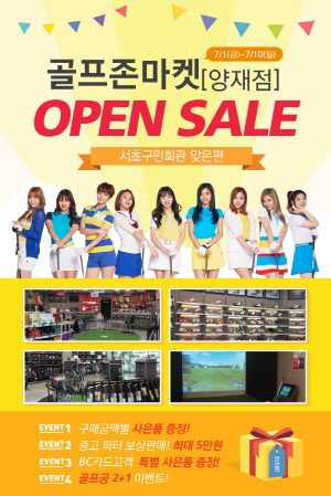 오픈을 기념해 오는 10일까지 150만원 이상 구매 고객에게 기프트카드 5만원권을 선착순으로 증정하고, 90만원 이상 구매 고객은 테일러메이드 골프볼 1더즌, 60만원 이상 구매 고객은 캘러웨이 골프모자, 30만원 이상 구매 고객은 스프레이 선블럭을 각각 사은품으로 제공한다. 사은품은 중복 증정 가능하다. 또 중고 퍼터를 양재점에 가지고 오면 최대 5만원을 보상해주는 '중고 퍼터 보상 판매' 이벤트도 진행된다.