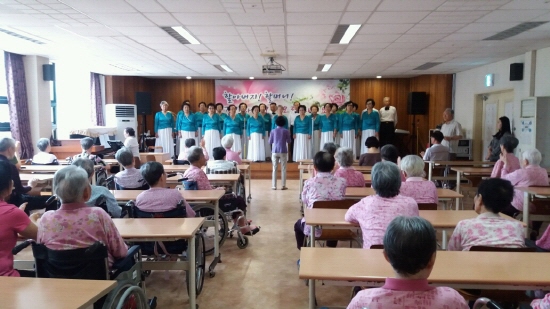 서구노인복지관 (관장 장곡스님) 특화사업으로 진행하고 있는 남선밴드와 젤라합창단에서는 문화소외계층에게 문화공연의 관람기회를 제공하고자 5일 오후 대전 유성구 덕명동에 위치한 선우치매센타에서 위문공연을 실시했다.
