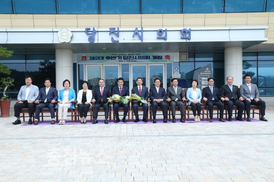 제2대 당진시의회(의장 이종윤)는 7일 오전 10시 본회의장에서 김홍장 당진시장을 비롯해 시의원, 초청내빈 등 100여명이 참석한 가운데 ‘제2대 후반기 당진시의회 개원식’을 갖고 본격적인 의정활동에 들어갔다.