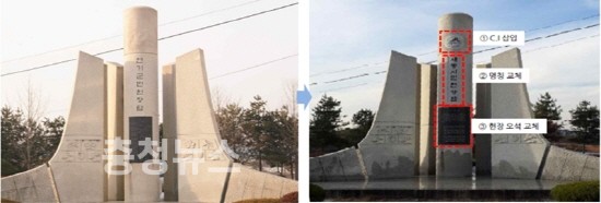 ▲ 좌측은 연기군민헌장탑, 우측은 세종시민헌장탑으로 중앙기둥의 3개소를 정비한 모습 (세종시 제공) 충청뉴스 최형순 기자