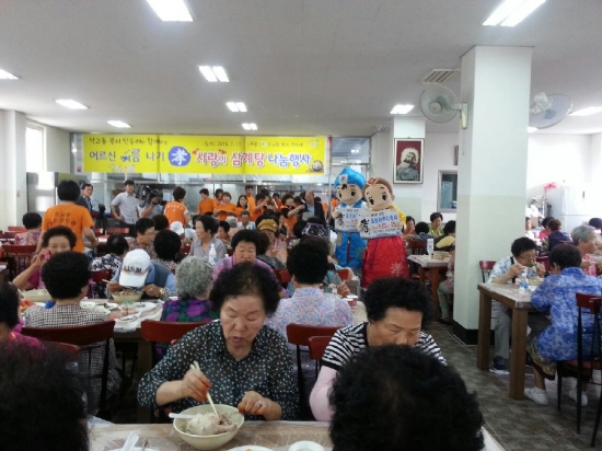 회원과 자원봉사자 등 30여 명은 정성스럽게 끓여 낸 삼계탕과 함께 떡, 과일, 음료수 등 다과를 준비해 무더위와 마주하고 있는 어르신들이 건강하게 여름을 이겨낼 수 있도록 정성을 다해 대접했다.