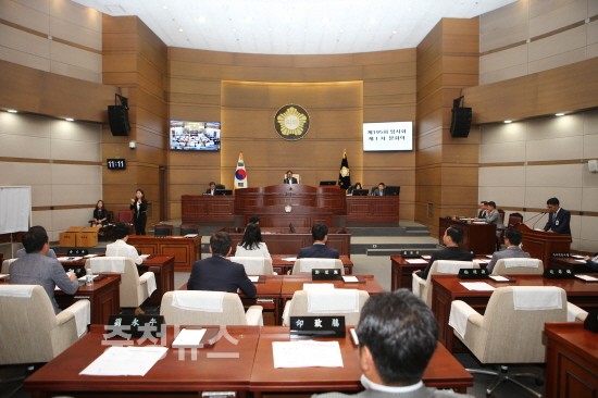 천안시의회(의장 전종한)는 임시회 첫날 14일 1차 본회의에서는 정도희 의원(사선거구 백석동, 성정1동, 성정2동)을 의회운영위원장으로 선출하면서 제7대 하반기 천안시의회 원구성을 마무리했다.