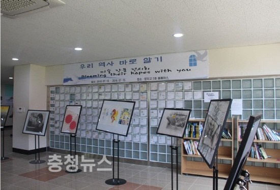 ‘Blooming their hopes with you’(그들의 희망을 당신과 함께 꽃 피움)이라는 주제로 열린 미술전시회에서는 교내 미술 동아리에서 한달 간 동아리 시간을 활용해 만든 우수작품이 2층 홈베이스와 복도에 전시됐다.