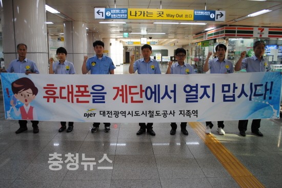김성흠 지족역장은 “최근 시민들이 보행시 휴대폰에 집중 하다보면 전방 주시태만으로 계단에서 넘어지거나 추락하는 안전사고가 빈번하게 발생하고 있다며 안전에 대한 경각심을 갖도록 고객안전 캠페인을 지속적으로 전개 하겠다”고 밝혔다.