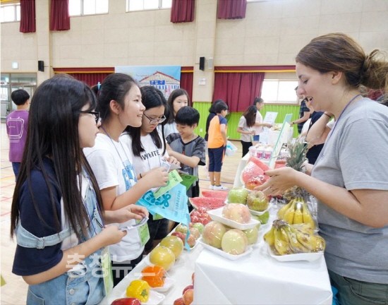 학생들은 학년별로 나뉘어 모조 화폐를 활용한 시장놀이와, 약국, 호텔, 공항, 은행 등 다양한 상황에 맞는 영어 의사소통 능력을 키웠다.