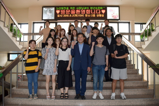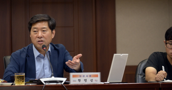 충남 황명선 논산시장은 2일 오전 논산시청 상황실에서 시청 아르바이트 대학생들과 논산발전 방안에 대한 간담회를 가졌다고 밝혔다.