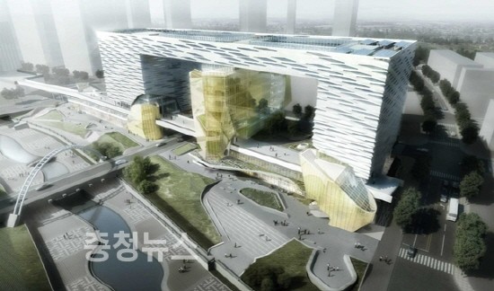 옥상정원으로 연결된 정부세종청사의 설계에서 착안하여 11층 높이의 3개 빌딩이 옥상과 3층에서 연결되는 독특한 설계를 채택하고 있으며, 핵심 입주시설로는 1,000석 규모의 메가박스와 외식업종이 입점할 계획이다.