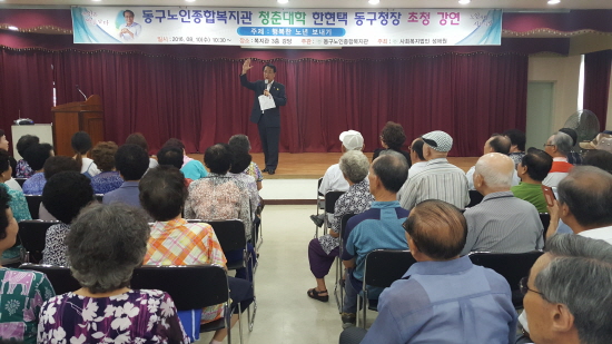 ▲ 한현택 구청장 노인종합복지관 청춘대학 특강/ 사진제공- 동구청