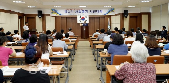17일 군 농협중앙회 회의실에서 제3기 사회복지 시민대학 개강식 열려