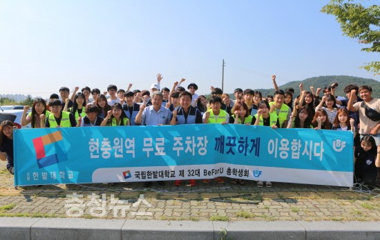 한밭대 오정환 총학생회장, 학생 60여명과 함께 청소 현충원(한밭대)역 명예역장으로 위촉된 ‘오정환 한밭대 총학생회장(34,경제학과)’이 현충원역 이용 홍보와 환승주차장 환경 미화를 위해 한밭대 학생 60여명과 환승주차장 청소 봉사활동을 25일 전개하고 현충원(한밭대)역장과 기념촬영을 하고 있다. ▲ 현충원역 명예역자 환승 주차장 봉사활동 모습/ 가운데 왼쪽 최진호 현충원(한밭대)역장, 오른쪽 명예역장 오정환 총학생회장 대전도시철도공사(사장 직무대행 김기원)는 지난 6월 3일 도시철도 역사 주변 5개 대학 총학생회장을 2016년 명예역장으로 위촉했다. 저작권자 © 충청뉴스 무단전재 및 재배포 금지 최형순 기자 다른기사 보기 기사가 마음에 드셨나요? 충청뉴스 좋은 기사 후원하기 1,000원 3,000원 5,000원 10,000원 30,000원 50,000원 직접입력 비회원 약관동의하기 ※ 소중한 후원금은 더 좋은 기사를 만드는데 쓰겠습니다.