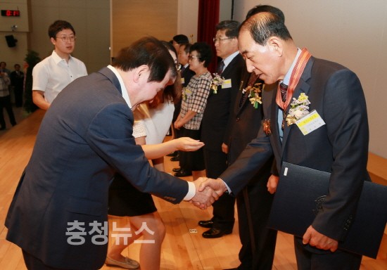 충남도교육청(교육감 김지철)은 30일 본청 대강당에서 퇴임교육공무원 및 가족들이 참석한 가운데 올해 8월말 퇴임 교육공무원에 대한 정부포상 전수식을 가졌다고 밝혔다.