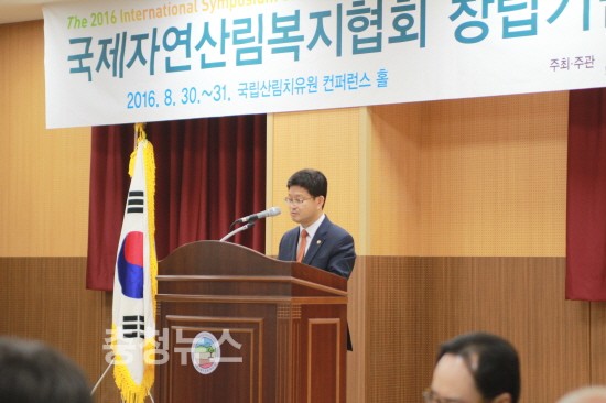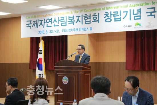 신원선 산림청장이 30일 경북 영주시 봉현면 국립산림치유원 콘퍼런스홀(학술회의장)에서 '국제자연산림복지협회 창립기념 국제 심포지엄(학술토론회)'을 개최했다.
