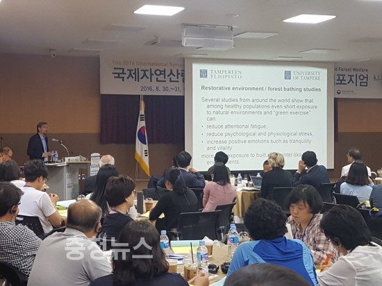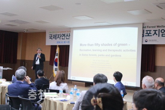 스위스의 클라우스 씨랜드(Klaus Seeland) 교수가 '스위스의 숲과 공원', 핀란드의 칼리비 코필라(Kalevi Korpela) 교수가 '자연환경과 웰빙(참살이)'에 관한 주제로 발표를 했다.