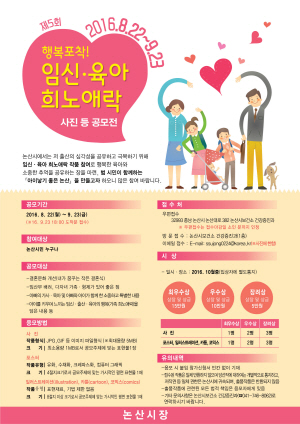 사진 등 공모에 대한 자세한 내용은 논산시보건소 건강증진과 출산대책팀(☏041-746-8062)로 문의하면 된다.