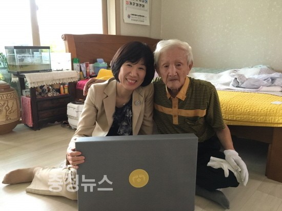 강윤진 청장은 대통령과 국가보훈처장 명의 위문품을 전달하면서, 감사와 존경의 마음을 전하고 지사의 건강을 기원했다.