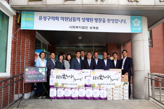 유성구의회(의장 민태권)가 9일 민족의 대명절인 추석을 맞아 관내 사회복지시설인 성세재활원을 찾아 따뜻한 명절 분위기를 전했다.