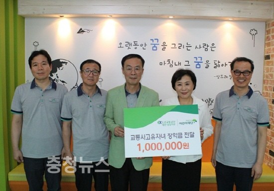 도로교통공단 이건호 대전․충남지부장은 지난해 직원들이 열심히 일해 받은 성과포상금을 교통사고 피해자 유자녀에게 장학금을 기탁하며, 어린 아이들이 부모의 교통사고로 힘든 시간을 보냈겠지만 어려움을 딛고 밝게 자랐으면 좋겠다”며, “앞으로 더욱 도로교통 안전을 위해 힘쓰겠다”고 밝혔다.