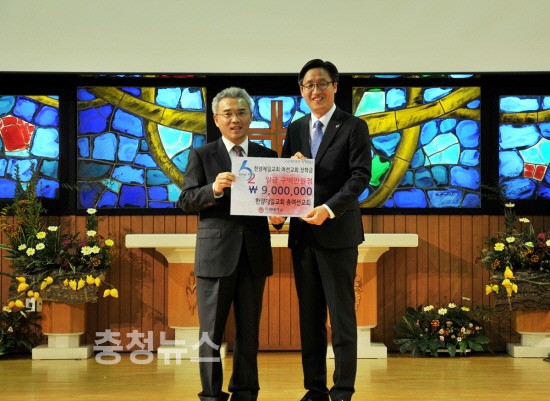 목원대학교 총장 박노권은 29일(목) 11시 교내 채플실에서 한양제일감리교회 총여선교회 회원들부터 900만원의 ‘중국인 유학생 장학금’과, 김종석 목사로부터 1,100만원의 ‘신학대학 장학금’을 전달받았다고 밝혔다.
