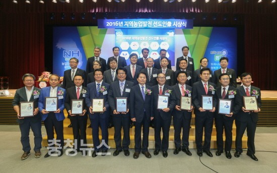 ‘2016년 지역농업발전 선도인像’ 시상식이 6일 오전 11시 서울 중구 농협중앙회 본관 대강당에서 김병원 농협중앙회장, 구본영 천안시장을 비롯한 수상자 및 지역주민 등이 참석한가운데 개최됐다.