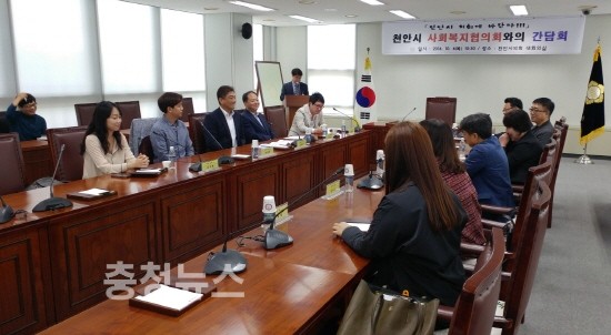 천안시 사회복지축제 고충과 발전 방향 논의 6일 전종한 천안시의회 의장은 의회 대회의실에서 천안시 사회복지협의회(회장 윤미숙)와 간담회를 가졌다. ▲ 전종한 천안시의회 의장,사회복지협의회 간담회 / 충청뉴스 최형순 기자 전종한 의장은 “천안시 사회복지의 발전을 위해서는 사회복지협의회 및 관련 단체들이 적극적인 역할이 필요하다며, 시의회에서도 오늘 논의된 현장의 소리를 의정에 반영할 수 있도록 최선을 다하겠다”고 전했다. 이번 간담회에서는 최근에 천안시 사회복지협의회가 주관했던 ‘천안시 사회복지축제’에 대한 고충과 발전 방향에 대해 얘기를 나누었으며, 사회복지에 대한 시민의 관심과 참여, 천안시의 재정 지원 등을 논의하였다. 저작권자 © 충청뉴스 무단전재 및 재배포 금지 최형순 기자 다른기사 보기 기사가 마음에 드셨나요? 충청뉴스 좋은 기사 후원하기 1,000원 3,000원 5,000원 10,000원 30,000원 50,000원 직접입력 비회원 약관동의하기 ※ 소중한 후원금은 더 좋은 기사를 만드는데 쓰겠습니다.