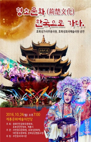 ‘형초문화 한국으로 가다’는 중국의 역사와 문화, 자연 등을 소재로 한 공연으로 민속악기 연주, 남녀 군무, 남녀 독창, 한극, 황메이극 등을 선보일 예정이다.