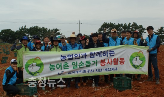 한국농어촌공사 충남지역본부(본부장 김병찬)와 서산태안지사(지사장 이현구)는 21일가을철 수확기에 인력이 부족한 충남 태안군 태안읍 남면 남산마을을 찾아 일손을 보탰다.