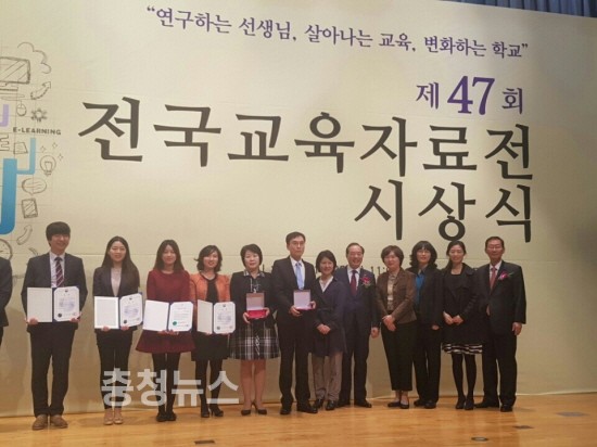 지난 10월 15일(토) 개관식을 시작으로 하여 10월 22일(토)까지 개최된 제47회 전국교육자료전에서 대전은 사회팀(대전동서초 조승룡 외 3명, 1등급)과 실과팀(대전중촌초 김현진 외 1명, 1등급)은 최고상 후보로까지 오르는 기록을 거두었으며, 지난 22일(토) 시상식에서는 한국교총회장으로부터 단체상을, 실과팀과 미술팀은 분야별 대표로 푸른기장증을 수여받았다.