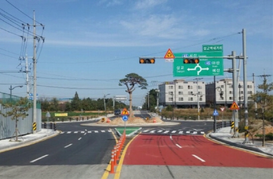 또한 가로등 및 지장물을 이설하고 중앙교통섬에 소나무를 식재하는 등 부대시설 공사를 마무리해 지난 17일 준공 운영되고 있다.