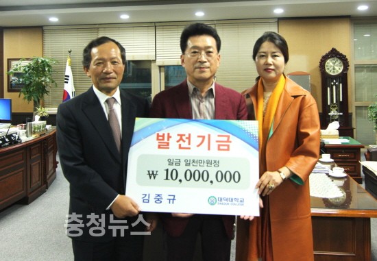 대덕대 총장 지인 김중규 씨, 1천만 원 기부