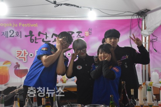 ▲ 칵테일 시음 행사 부스를 꾸민 청운대학교 칵테일 동아리 R.C 학생들 모습