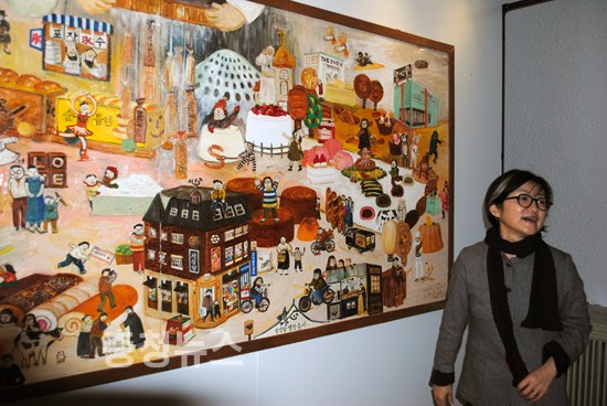 ▲ 성심당(聖心堂) 창업 60주년 기념 사진전을 설명하고 있는 김미진 상임이사