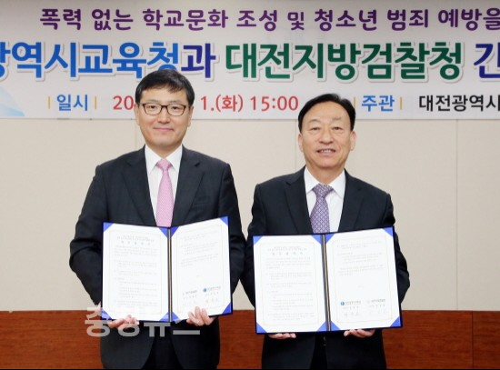 대전광역시교육청(교육감 설동호)은 11월 1일  대전시교육청 6층 중회의실에서 대전지방검찰청(검사장 안상돈)과 ‘폭력 없는 학교문화조성 및 청소년 범죄 예방’을 위한 업무협약을 체결했다고 밝혔다.