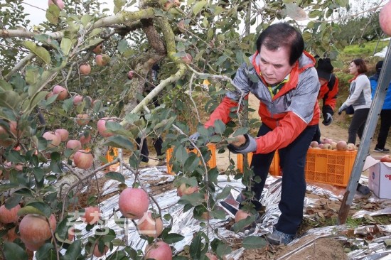 충남도교육청(교육감 김지철)과 공무원노동조합은 4일 본격적인 추수기를 맞아 일손이 부족한 예산군 광시면 과수농가를 찾아 직원 60여 명이 농촌일손 돕기에 구슬땀을 흘렸다고 밝혔다.