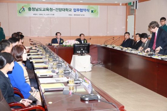 협약식에서 김지철 교육감은 “자유학기제를 기반으로 한 교육 혁신, 인성과 감성에 기반 한 참학력 신장 그리고 소질과 적성 중심의 진로진학교육을 내실 있게 운영함으로써 미래역량 함양과 창의적 인재 육성에 노력하고 있다”며 “오늘 건양대학교와의 업무협약을 통해 대학의 질 높은 교육 시스템이 학생중심 충남교육 발전에 적극 활용할 수 있게 되기를 기대한다”고 말했다.