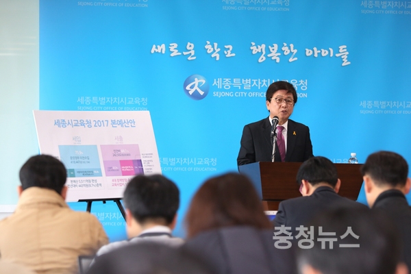 최 교육감은 16일 ‘새로운 학교, 행복한 아이들’ 교육비전 실현과 서로 협력하고 참여하는 지역교육공동체 조성을 위한 ’17년도 세종특별차치시교육비특별회계 세입·세출 예산(안)을 설명을 했다.