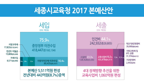 세종시교육청, 2017년도 본예산에 5,511억원 편성
