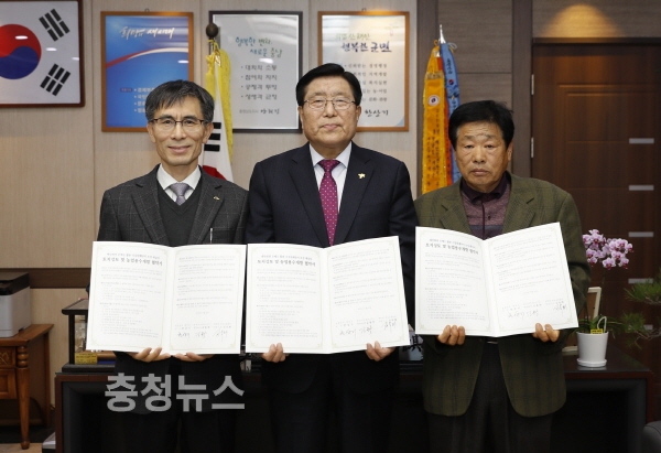충남 태안군이 지난 16일 군수실에서 한상기 군수를 비롯, 한국서부발전(주) 김용학 태안건설본부장, 원북면 영농조합법인 김욱래 대표이사 등 10여 명이 참석한 가운데 ‘태안화력 온배수 활용 시설원예단지 조성 대상지 토지성토 및 농업용수개발 협약서’를 체결했다.