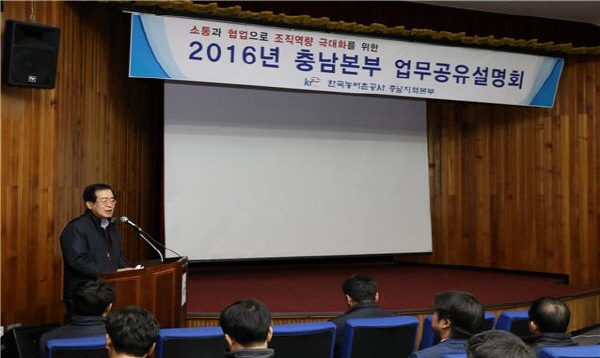 한국농어촌공사 충남지역본부는 17일 본부내 타 부에서 수행중인 사업에 대한 이해도 제고를 통해 협업의 기초마련과 업무능력 향상을 도모하기 위한 전직원 업무공유 설명회를 가졌다.