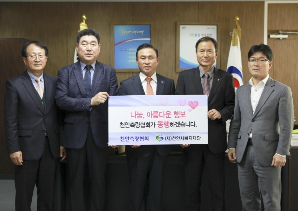 천안측량협회는 17일 천안시청에서 주요관계자들이 참석한 가운데 천안측량협회 회원들이 작성한 정기후원신청서 전달식을 가졌다.