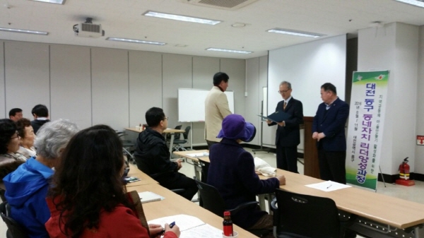 대전 동구(구청장 한현택)는 21일 구청 평생학습원에서 ‘동구 동네자치 리더 양성과정’ 수료식을 열고 마을공동체 활성화를 선도할 파수꾼인 동네자치 리더 47명을 배출했다고 밝혔다.