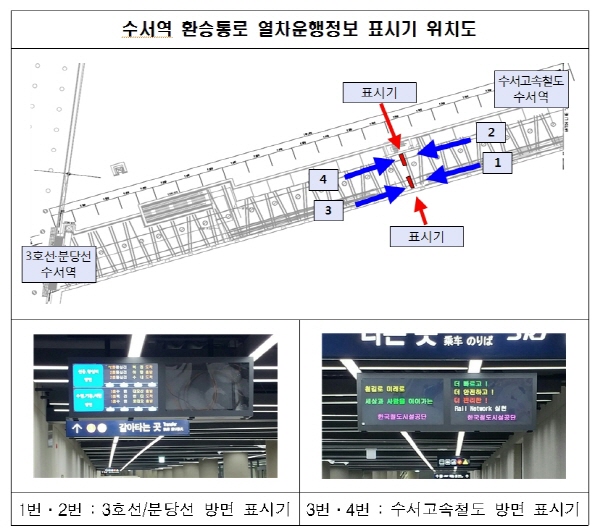 수서역 · 지제역 환승통로에 열차운행정보 표시기 시범 설치 및 운영