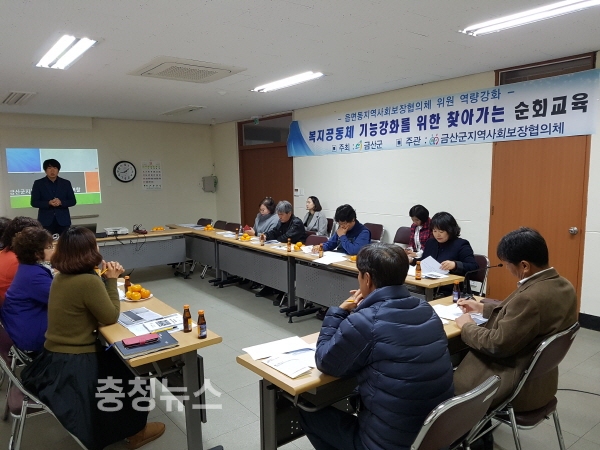 충남 금산군지역사회보장협의체는 11월17일부터 21일까지 3일 동안 추부면, 진산면, 군북면 시작으로 읍면지역사회보장협의체 위원 역량강화를 위한 순회교육을 실시했다.