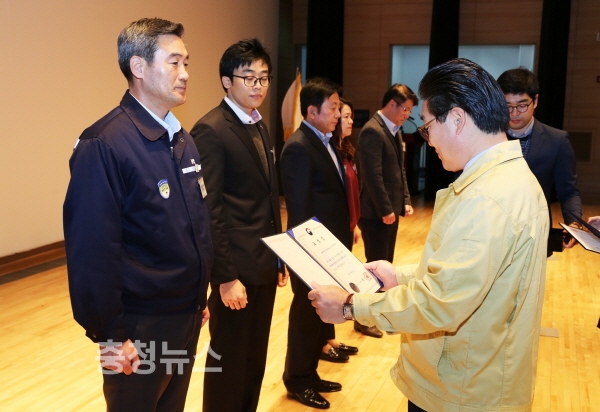 올해 민방위 발전에 기여한 유공자에 대한 표창에서는 현대제철 당진제철소 직장민방위대가 국민안전처장관 표창을 수상한 것을 비롯해 대한전선(주) 이 한 씨와 당진소방서 의용소방대 연합회가 충남도지사 표창을 받았으며, ㈜휴스틸 직장민방위대원 박두혁 씨 외 2명은 당진시장 표창을 받았다.