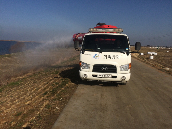 곡교천과 삽교호 철새도래지 주변 소독을 위하여 시에서 보유하고 있는 광역살포기 등 소독차량 2대와 아산축협 공동방제단등 3대를 동원하여 방역을 실시하고 있다.