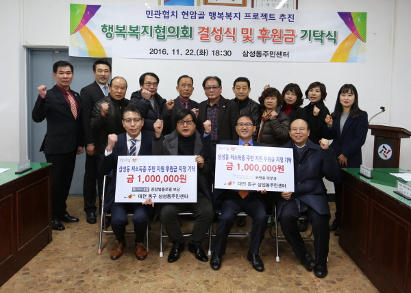 대전 동구 삼성동(동장 김형남)은 지난 22일, 관내 저소득층 지원을 위한 민주도형‘현암골 행복복지협의회’결성식 및 후원금 지정 기탁식을 가졌다고 밝혔다.