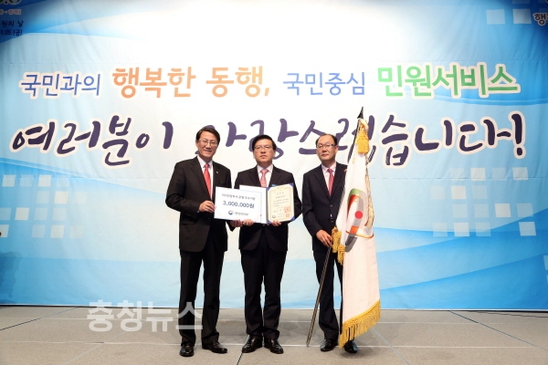 충남 당진시가 24일 강원도 강릉에 소재한 라카이 샌드파인 리조트에서 열린 제7회 민원공무원의 날 행사에서 민원행정 유공기관으로 선정돼 대통령 기관표창을 수상했다.