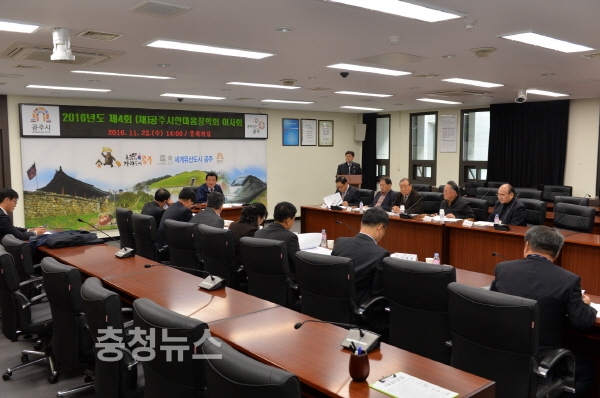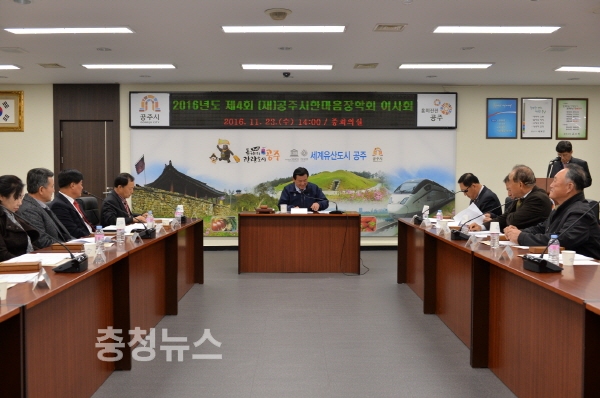 충남 (재)공주시한마음장학회(이사장 오시덕)가 23일 공주시청 중회의실에서 다양한 장학사업 전개 및 장학기금 확충을 위한 2016년도 제4회 (재)공주시한마음장학회 이사회를 개최했다.