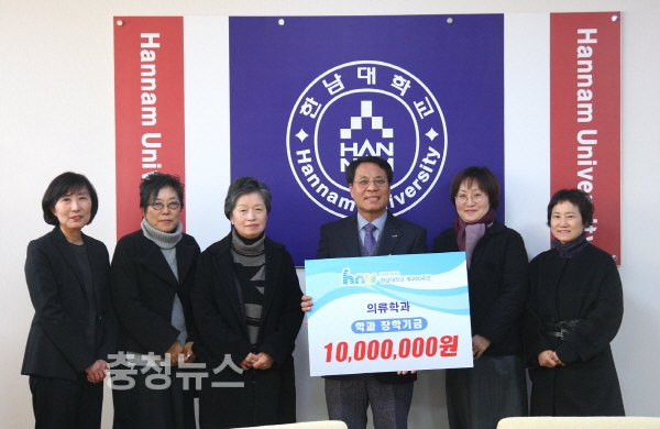 한남대 의류학과(학과장 김윤희) 교수 5명은 24일 이덕훈 총장에게 학과장학기금으로 1,000만원을 기탁했다.