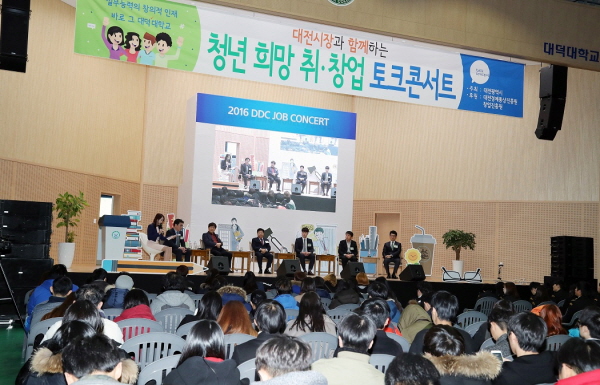 대전광역시(시장 권선택)가 대덕대학교와 공동으로 24일 오후 2시에 대덕대학교 체육관에서 기업 CEO, 대학생 등 1,000여 명이 참석한 가운데“청년희망 릴레이 토크콘서트’를 개최했다고 밝혔다.